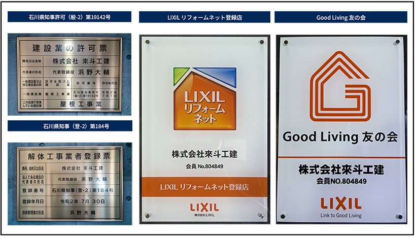來斗工建は、石川県から正式に許可を受けた安心の建設事業者です。