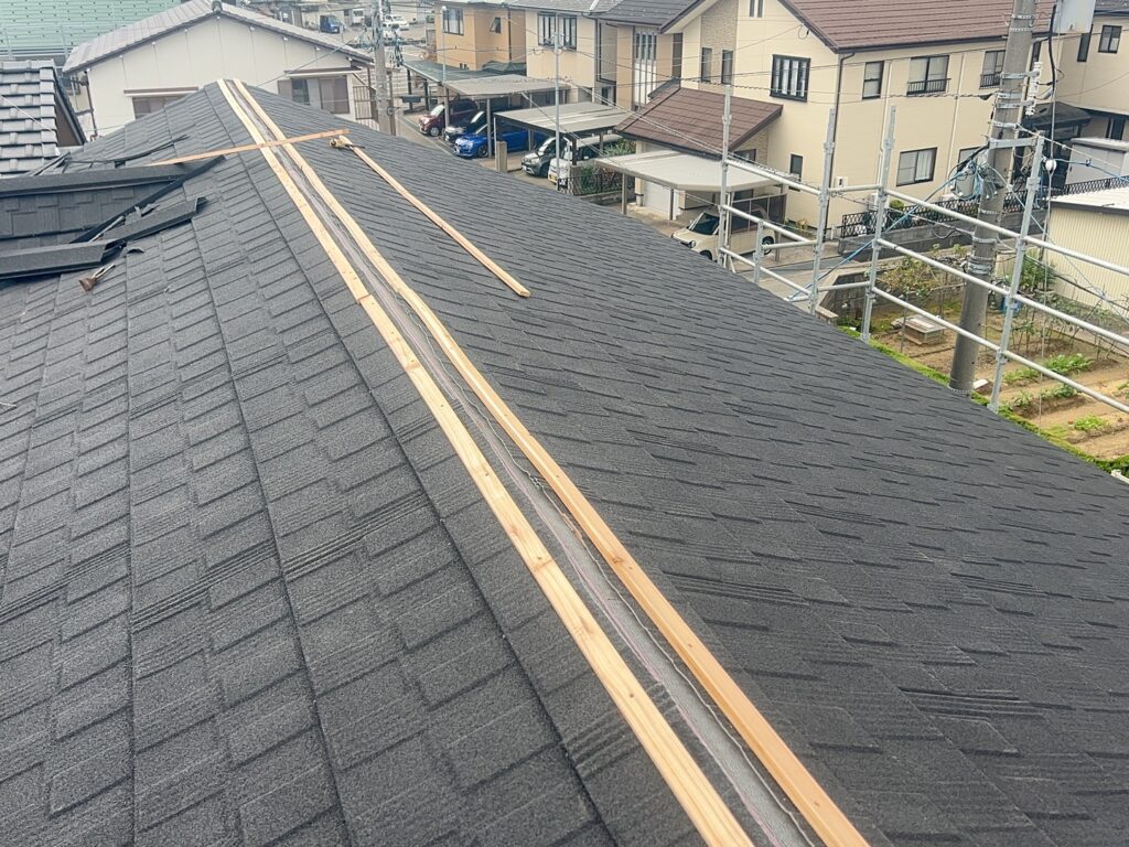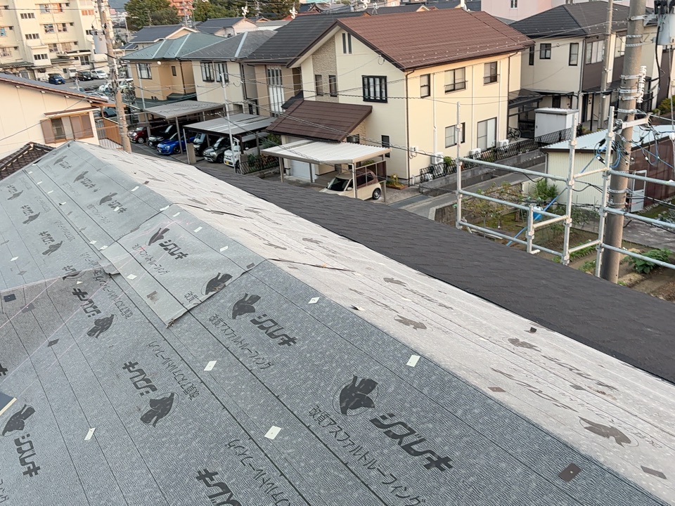 強風や地震でも安心できる石付き板金屋根です。 見た目もすっきりと整い長く快適にお住まいいただけるのが大きな特徴です。