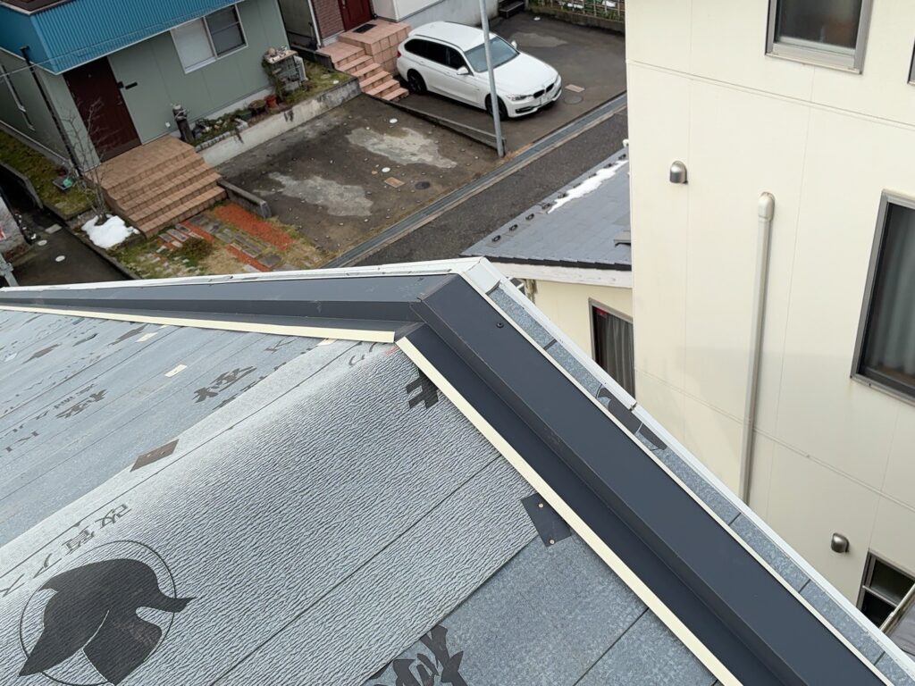 既存の屋根を撤去せずその上から屋根材を施工する、屋根カバー工法。 廃材がほとんど出ない為工期が短く費用を抑えながら屋根を一新できる工法です。