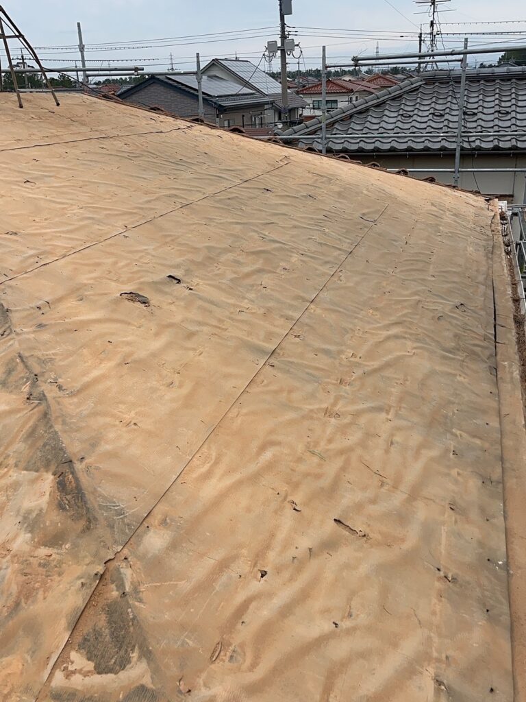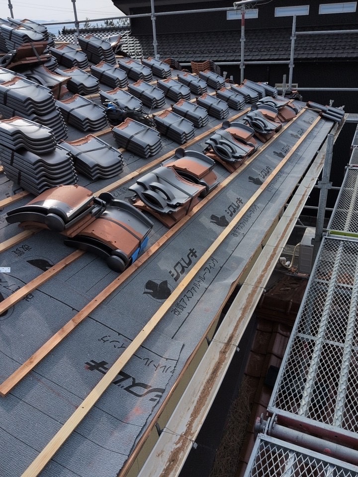 経年により色あせや痛みが見られた赤瓦の屋根を新しい銀黒色の瓦に葺き替えました。 これまでの温かみのある赤瓦から落ち着いた高級感のある銀黒色へと変わり、住まい全体の印象がグッと引き締まりました。 見た目の美しさだけではなく屋根材を新しくすることで防水性や耐久性も向上しています。