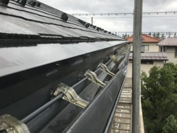 新しい軒樋を取り付け、水が流れる事を確認し、無事完成です。